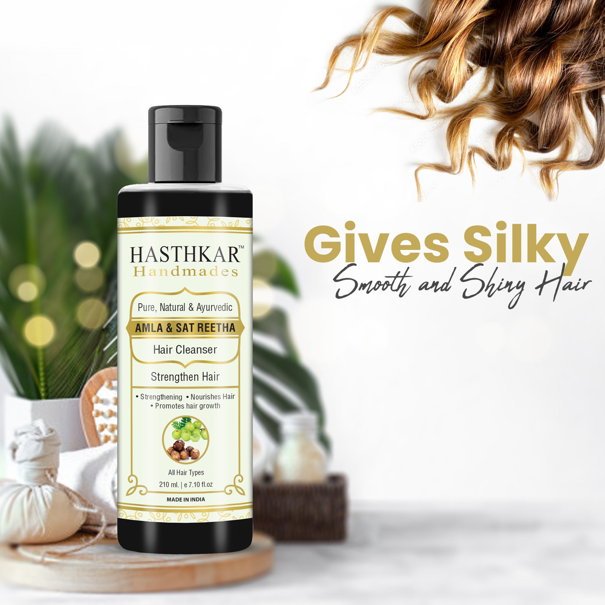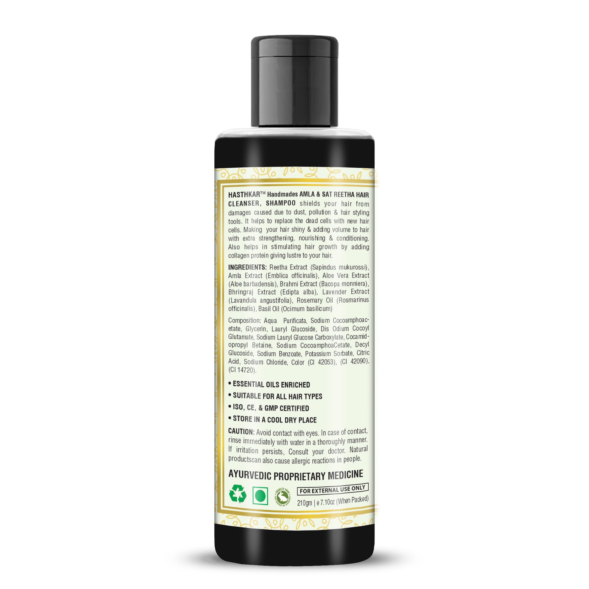 Hasthkar Handmades Herbal Amla & Sat Reetha Shampoo comprising the richness of Amla, coconut oil, milk, and Sat Reetha, these are natural liquid extracted.