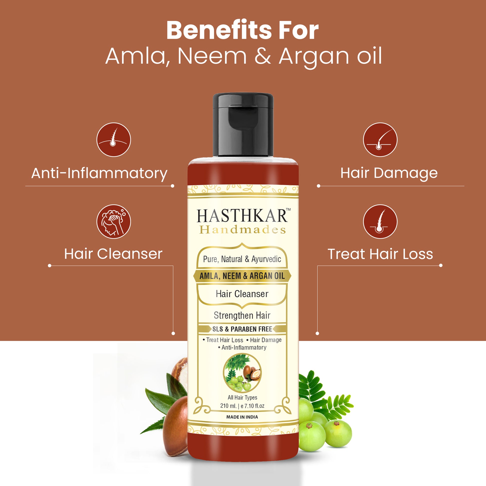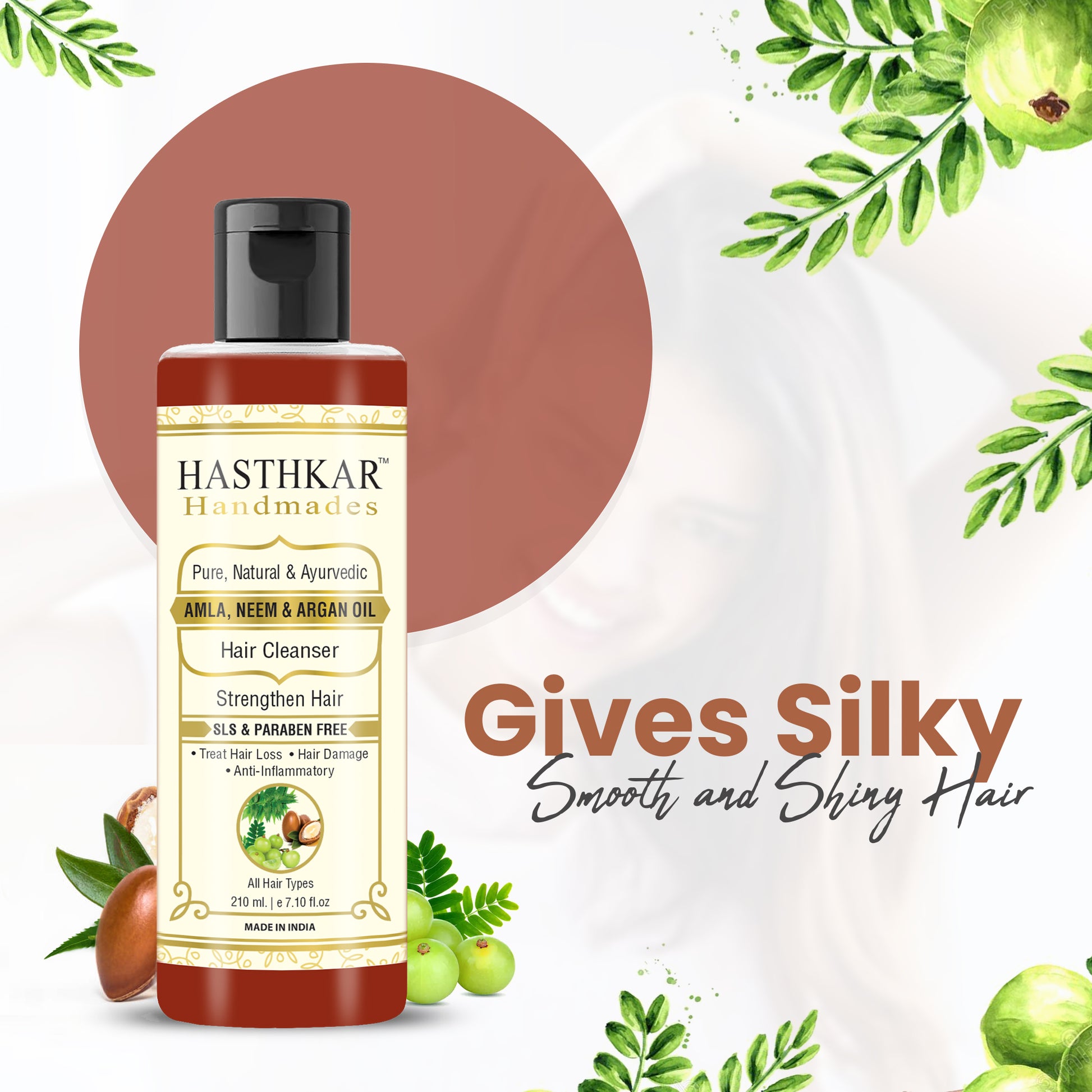 Hasthkar Handmades Amla Neem Argan Oil Shampoo will nourish and repair your dry, damaged hair and roots. It's a deep-cleaning and healing shampoo that helps to strengthen your hair's weak and weak roots. It improves in the softening of rough hairs.It promotes in the development of hair elasticity and strength, as well as the smoothing of rough cuticles and the enhancement of texture and appearance. A strengthening shampoo that cleans your scalp and hair while not stripping away the moisture shield helps to remove build-up.