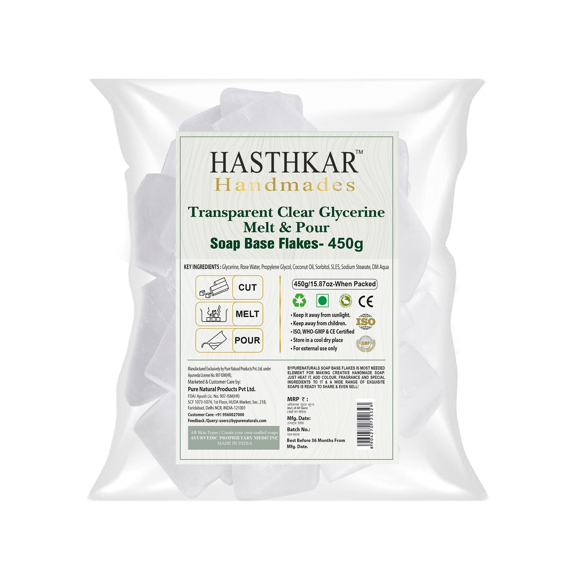 Hasthkar Handmades Soap Base For Soap Making Clear Glycerin Transparent Soap Base is best suited for both household & commercial production & is perfect for making plain transparent bars with luxurious lather and sparkling clarity. It is produced from the highest quality vegetable oil extracts. Transparent soap base, also known as a glycerin Soap base.