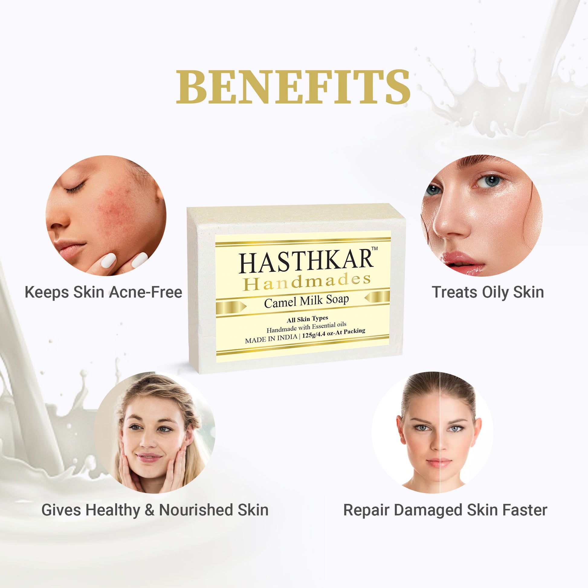 Camel Milk Soap is an excellent cleanser for the skin, soothes skin irritation, softens the skin, removes dead cells, helps reduce fine lines, wrinkles, and treats sunburn.It will provide your skin with a healthy glow by lightening it naturally.it is also safe for acne-prone skin