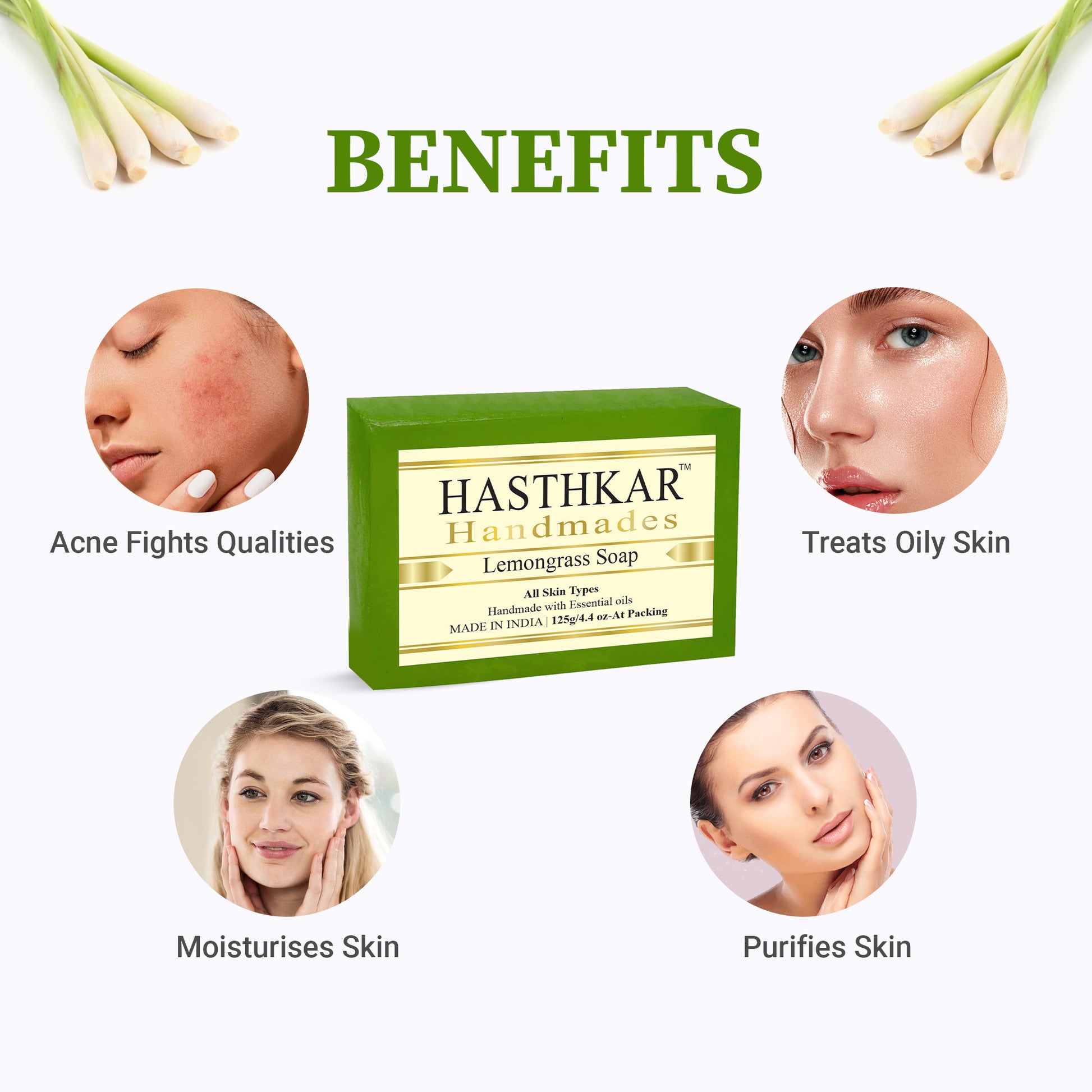 Lemongrass is antibacterial and anti-fungal. It's very cleansing, makes a good skin toner to clean out pores.Natural Handcrafted Soap - lemongrass improves the texture of the skin by removing the dead cells thereby preventing the formation of blackheads, and whiteheads.