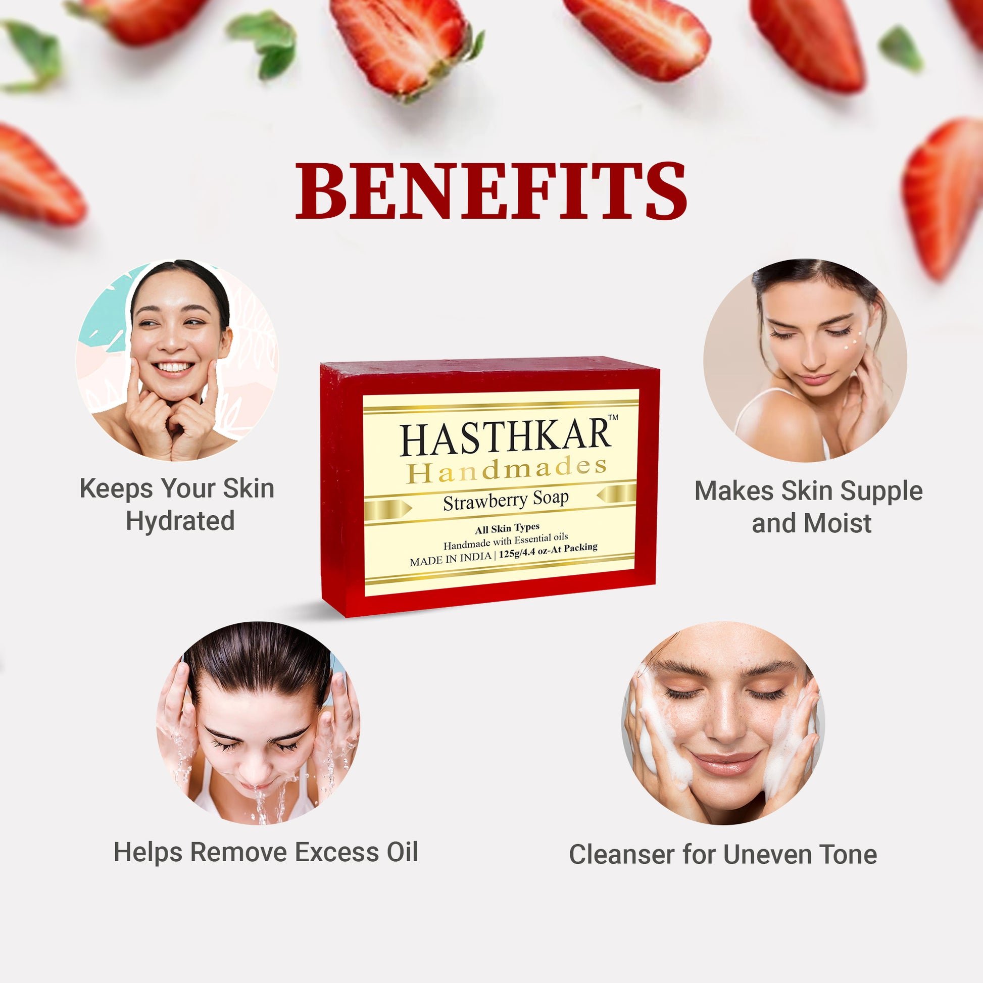 Acne Treatment. Rich in vitamin C, strawberries have anti inflammatory properties that help soothe and calm down breakouts.Reduces UV Damage.Puffy Eye Treatment.Fades Hyperpigmentation & Dark Spots.Improves Skin Health.Oil Control.Brightens The Skin.