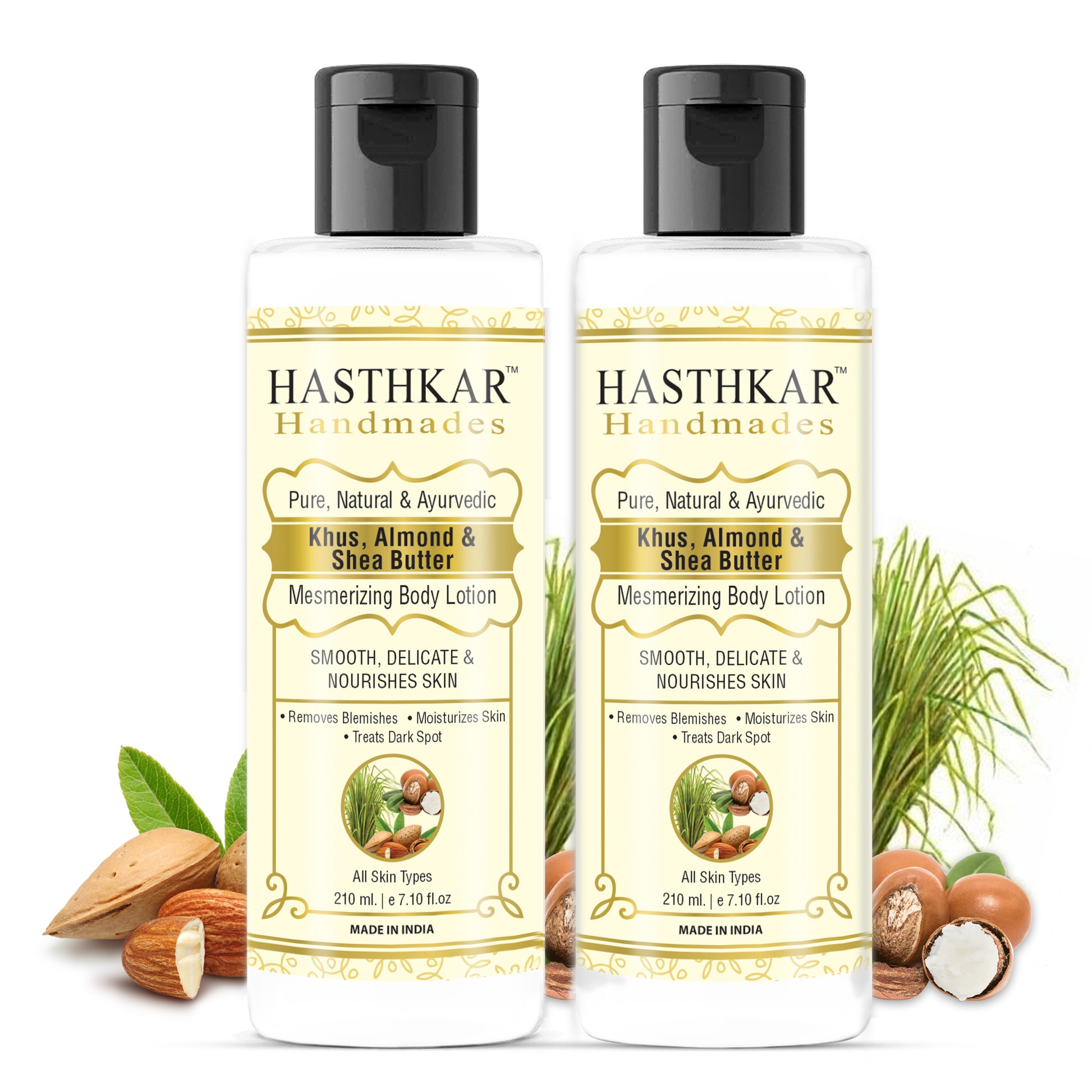 Hasthkar Handmades Khus Almond & Shea Butter Mesmerizing Body Lotion for Men & Women 210ml Pack of 2